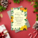Rustic country birthday invitation featuring vibrant sunflowers, traditional white daisies and orange flowers against a light yellow background with baby's breath and botanical greenery accents