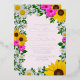 Rustic country rehearsal dinner invitation featuring vibrant sunflowers, traditional white daisies and pink flowers against a light pink background with baby's breath and botanical greenery accents