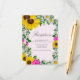 Rustic country wedding invitation featuring vibrant sunflowers, traditional white daisies and pink flowers against a light pink background with baby's breath and botanical greenery accents