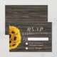 Rustic Sunflower Dark Wood Background Wedding RSVP Card
