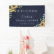 Beautiful watercolor sunflowers and eucalyptus bouquets, personalised navy blue event banner. Text font style, colour and size, can be customised.