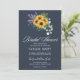Celebrate in rustic elegance with this charming bridal shower invitation. Featuring a bohemian-inspired watercolor arrangement of vibrant yellow sunflowers, blush pink blooms, and lush hunter green eucalyptus, all set against a deep navy background, this design perfectly blends country charm with modern boho sophistication.