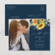 A rustic fall floral photo wedding save the date card with watercolor sunflower and eucalyptus bouquet. Click the edit button to customise this design.