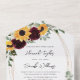 This fall rustic sunflower and burgundy roses country all in one wedding invitation with RSVP is perfect for a barn or ranch wedding. This invitation features watercolor yellow sunflowers with burgundy roses and baby's breath and sage eucalyptus greenery. This is a perfect colour scheme for a late summer or fall wedding Make this invitation your own by including your names and all of your wedding details. The RSVP has the option to add meal choice if needed.