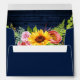 Rustic Navy Blue Wood, Watercolor Sunflower Floral with Roses, Peonies and Greenery Wedding Invitation Envelope.