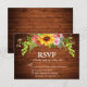 Rustic Sunflower Floral Wood Wedding RSVP Card