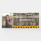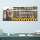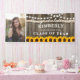 Rustic graduation banner design with sunflowers, string lights, and a wood background. Features a customizable photo area and text for name, school, and class year. Perfect for outdoor, country, or summer graduation celebrations.