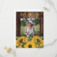 Rustic dark brown wood graduation Save the Date/Announcement postcard with colourful yellow sunflowers and space for your photo.  Contact us for help with customisation or to request matching products.