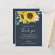 This rustic sunflower navy thank you wedding reception card is perfect for a country wedding. The bohemian floral design features yellow sunflowers, blush pink flowers and hunter green eucalyptus greenery in watercolor with an elegant modern boho feel. Place these cards at the table setting for each of your guests at your wedding reception. Personalise the card with your names and a special thank you message.