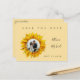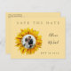 Elegant wedding save the date postcard featuring a yellow gold sunflower with your photo inside, the bride and groom's names, date, and website over a cream peach background. ++++ Easy to personalise on both sides! ++++++++++ Suitable for modern rustic country summer or autumn fall outdoor backyard, garden, barn or farmhouse weddings. ++++++ Please note that the colours are changeable. If you need to customise it in a specific colour of text and/or background, please contact the designer through the MESSAGE button below.