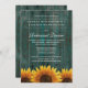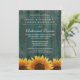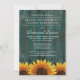 Rustic Sunflower Rehearsal Dinner Invitations - features a distressed turquoise barn wood background with rustic sunflowers at the bottom.