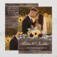 Express your gratitude in a heartfelt and beautiful way with this rustic wedding thank you card featuring sunflowers and burgundy roses. Designed to perfectly coordinate with your wedding stationery suite, this card blends warm woodgrain textures, soft string light accents, and vibrant floral details for a romantic, countryside-inspired look.