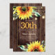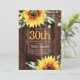 Rustic wood, yellow sunflowers with greenery, and sparkling string lights and lanterns 30th country-style birthday party invitation for women. Contact us for help with customisation or to request matching products.