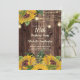 Rustic wood, yellow sunflowers with greenery, and sparkling string lights and lanterns 16th birthday party invitation for women. Contact us for help with customisation or to request matching products.