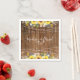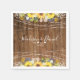 Rustic Sunflower String Lights Wedding Napkin. This design features pretty sunflowers against a rustic wood background with sparkling string lights. Personalise this custom design with bride and groom name, and wedding date.