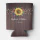 Rustic Sunflower String Lights Wood Wedding Can Cooler
