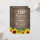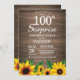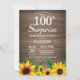 Rustic Sunflower Surprise 100th Birthday Invitation