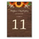Rustic Sunflower Terracotta Roses Boho Wedding Table Number