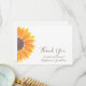 This thank you card features an original watercolor painting of a yellow sunflower on a white background with dark brown text.