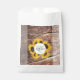 This design features rustic sunflowers on a wood backdrop. The sunflower wreath elegantly frames the wedding date. The yellow, green and brown colour tones create a rustic natural country garden feel. The opaque border highlights the sunflower centerpiece. Elegant wedding favour bag design with modern elements. Matching wedding invitations and other stationery items are also available.