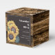 Personalise a unique wedding favour box for guests with this Rustic Sunflower Wedding Favour Box. Favour box design features a trio of watercolor sunflower blooms against a rustic wooden background. Personalise with the groom and bride's names along with the wedding date. Additional wedding stationery available with this design as well.