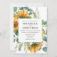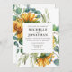 A rustic wedding invitation set featuring watercolor sunflowers in soft fall colours.