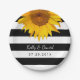 Sunflower Modern Stripes Rustic Wedding Paper Plates.