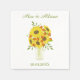 A rustic sunflower wedding themed set of napkins, this item features name of the couple at the top written in beautiful green cursive font. Underneath is a vase full of sunflowers. The wedding date is underneath in green. Order yours today!