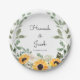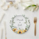 These rustic sunflower wedding paper plates are perfect for a late summer or fall wedding reception. Coordinating plates compliment your wedding reception, rehearsal dinner, or bridal shower. These plates feature watercolor sunflowers, baby's breath, greenery and eucalyptus in the colour yellow, white and sage green. This pretty colour palette is perfect for a garden wedding. Make this plate your own by including your names and all of your wedding date. For further personalisation, please click the "customise further" link and use our design tool to modify this template.