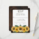 Send guests a simple and elegant Rustic Sunflower Wedding RSVP Card with your invitation. Response card design features a rustic wooden background with an elegant bouquet of sunflowers. Personalise with the response date and menu choices. Additional wedding stationery available with this design as well.
