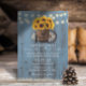 Rustic Sunflower Wine Barrel Dusty Blue Wedding Invitation