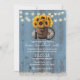 Rustic Sunflower Wine Barrel String Lights Country Dusty Blue Barn Wedding Invitations.