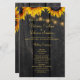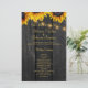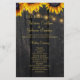 Elegant rustic budget wedding ceremony program template featuring beautiful bright yellow orange sunflowers and strings of twinkle lights on a country style dark brown wooden background. +++++++++++ + Personalise it with your your details! +++++++++++ Suitable for rustic country vintage chic summer garden autumn fall outdoor backyard or farmhouse weddings.