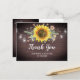 Rustic Sunflower Wood Jar Light Wedding Thank You Postcard