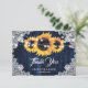 Rustic Sunflower Wood Lace Navy Blue Wedding Thank You Card