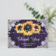 Rustic Sunflower Wood Lace Purple Wedding Thank You Card