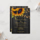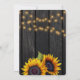 Elegant chic summer or autumn fall wedding stylish invitation template on dark brown barn wood featuring a beautiful sunflowers bouquet and strings or twinkle lights. +++++++++++++++ The invitation is suitable for elegant rustic country barn farmhouse weddings. +++++ Digital download available.