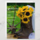 Customise the charming Rustic Sunflowers and Cowboy Boots Country Western Wedding Menu with the details of the meal that you will serve at your informal yet elegant barn party bridal shower, rehearsal dinner or marriage reception by adding the salad or first course, entree or second course and dessert or third course. This ranch theme custom western wedding menu features a quaint floral photograph of a pair of brown leather cowboy boots filled with a bouquet of yellow sunflower blossoms and a white bridal veil on barn wood with a wagon wheel and a blurred green natural background.