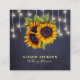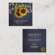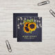 Rustic modern style square business card featuring a big sunflowers bouquet, strings of white twinkle lights and gold trendy typeface typography script on a classy dark midnight navy blue chalkboard background. ++++++++++++ Suitable for rustic wedding or other events planners, gardeners, landscape designers, florists, photographers.