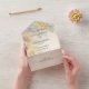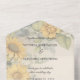 Introducing this rustic golden sunflower All-in-One wedding invitation - a radiant and elegant invitation that encompasses everything you need to set the tone for your special day, featuring a captivating rustic opaque golden sunflower design! The All-in-One wedding invitations are both beautiful and practical by combining the wedding invitation with an easy to remove perforated RSVP postcard. They are also quick and easy to prepare for mailing. Simply address the invitation, fold the back flap and seal with the included clear stickers. Once your guests receive the pre-addressed invitation they simply tear off the perforated RSVP card and drop it in the mail.
