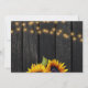 Elegant chic summer or fall wedding stylish thank you card template on dark brown barn wood featuring beautiful sunflowers bouquets, strings or twinkle lights, and a chic faux gold calligraphy script. ++++++++++++++ Easy to personalise with your details and photo! +++++++++++ Suitable for elegant summer or autumn fall rustic country outdoor backyard or barn weddings.