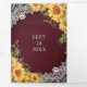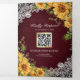 Rustic Sunflowers Burgundy Wood QR Code Wedding Tri-Fold Invitation