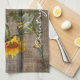 Rustic Sunflowers Butterflies Barn Board Tea Towel