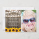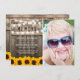 Sending a funeral thank you note is a simple way to thank those that showed you comfort during your time of bereavement. This country chic sympathy card features a rustic wood background, a photo of the person who has passed away, bright yellow sunflowers, string lights, the saying "In Loving Memory", their name, birth/death dates, and a personalised thank you note.