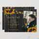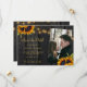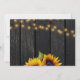 Elegant chic summer or fall wedding stylish save the date card template on dark brown barn wood featuring beautiful sunflowers bouquets, strings or twinkle lights, and a chic faux gold calligraphy script. ++++++++++++++ Easy to personalise with your details and photo! +++++++++++ Suitable for elegant summer or autumn fall rustic country outdoor backyard or barn weddings.