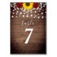 Rustic Sunflowers Roses Jar Lights Wedding Table Number