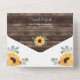 This Rustic Sunflowers and String Lights Eucalyptus Wedding all in one wedding invitation with RSVP is perfect for a barn or ranch wedding. This invitation features watercolor yellow sunflowers with baby's breath and sage eucalyptus greenery on a brown wood background with string lights. This is a perfect colour scheme for a late summer or fall wedding Make this invitation your own by including your names and all of your wedding details and your own photo. For further customisation, please click the "customise further" link and use our design tool to modify this template.