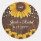 Rustic Sunflowers String Lights Monogram Wedding Classic Round Sticker