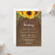 This rustic floral wedding invitation features an elegant sunflower bouquet in watercolor accented with greenery.