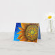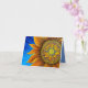 A stylized abstract depiction of a sunflower with bold sweeping lines and striking color contrasts. The sunflower itself rendered in shades of golds, yellows and oranges.